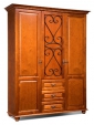 Набор мебели для спальни «Глория 8» изготовлен из массива березы в сочетании с элементами шпонированной ДСП и декоративными коваными элементами. Отделка выполнена нитроцеллюлозными красителями. Цвет мебели только в одном тоне.